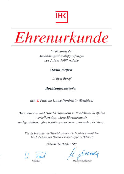 Urkunde Hochfacharbeiter